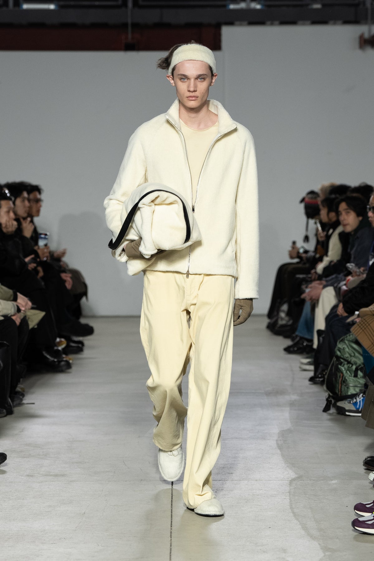 和歌山県高野口で作成したオリジナルのウールアルパカボア。通常のボアより毛足を長く設計し、柔らかなボリューム感がある。立体的なパターンメイキングで動きのあるトラックジャケットに仕上げている。[表地]表面(ボア部分):毛80%アルパカ20%基布:綿100%[裏地]ポリエステル64%複合繊維(ポリエステル)36%モデル183cm 着用サイズ3■同素材のアイテムはこちら