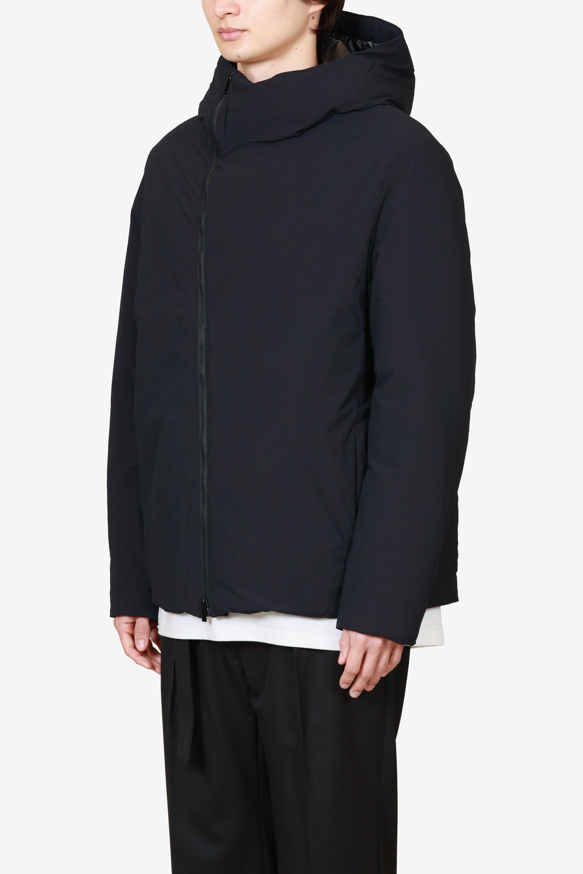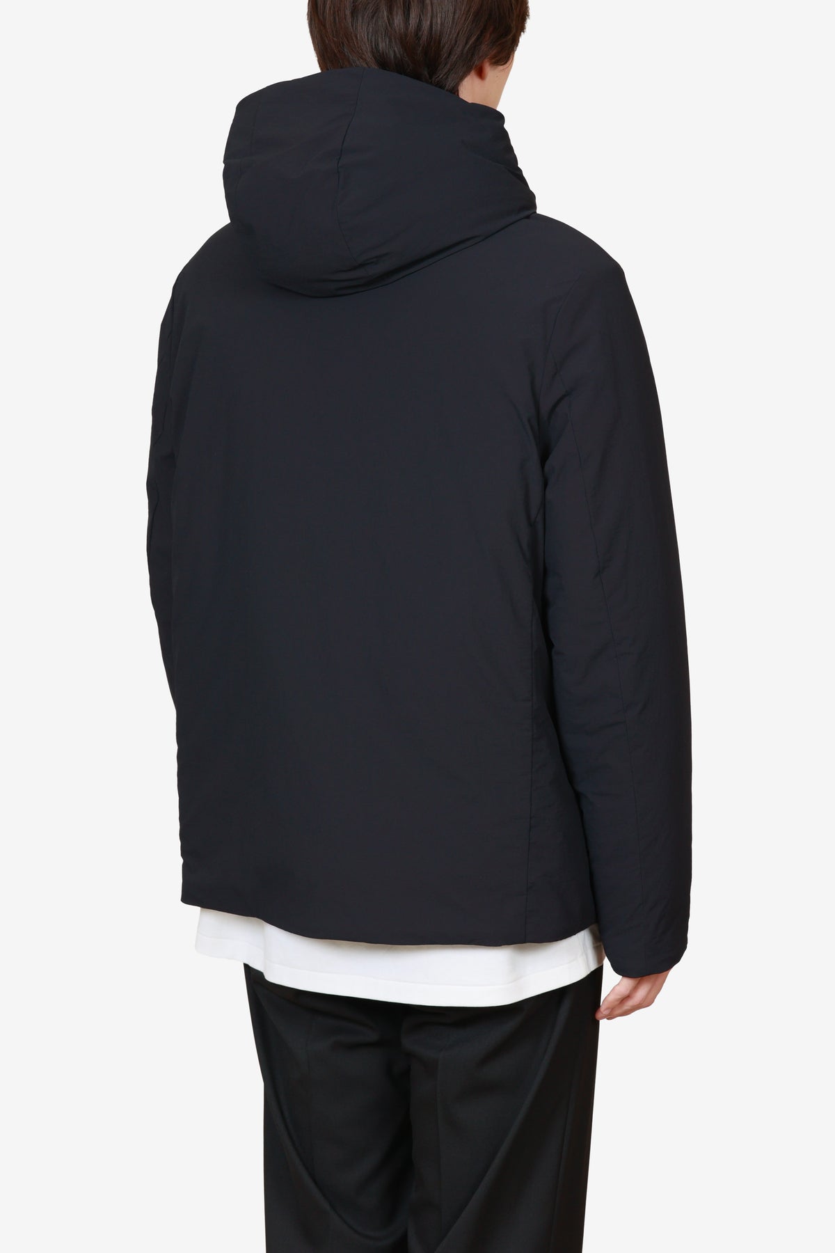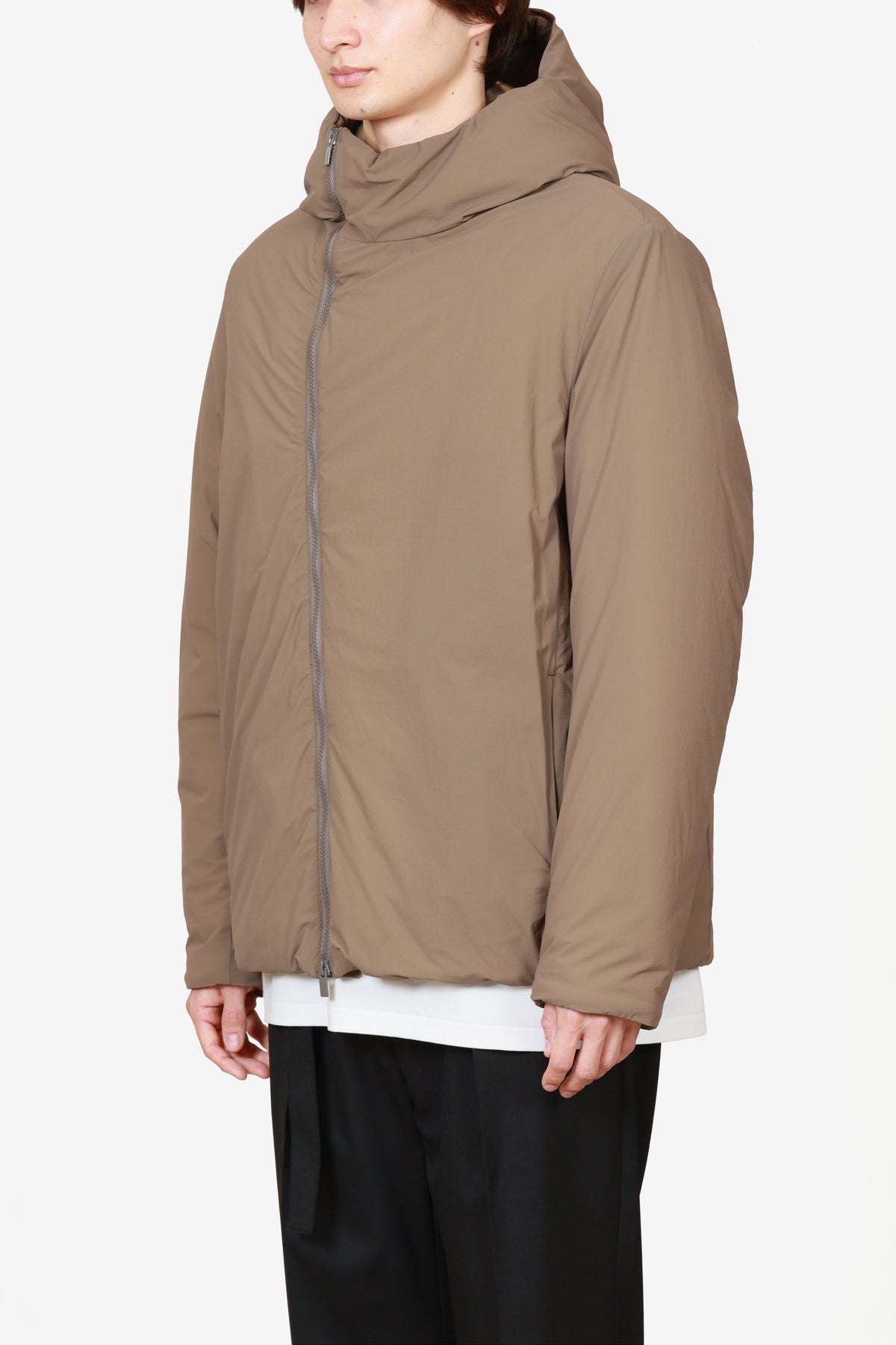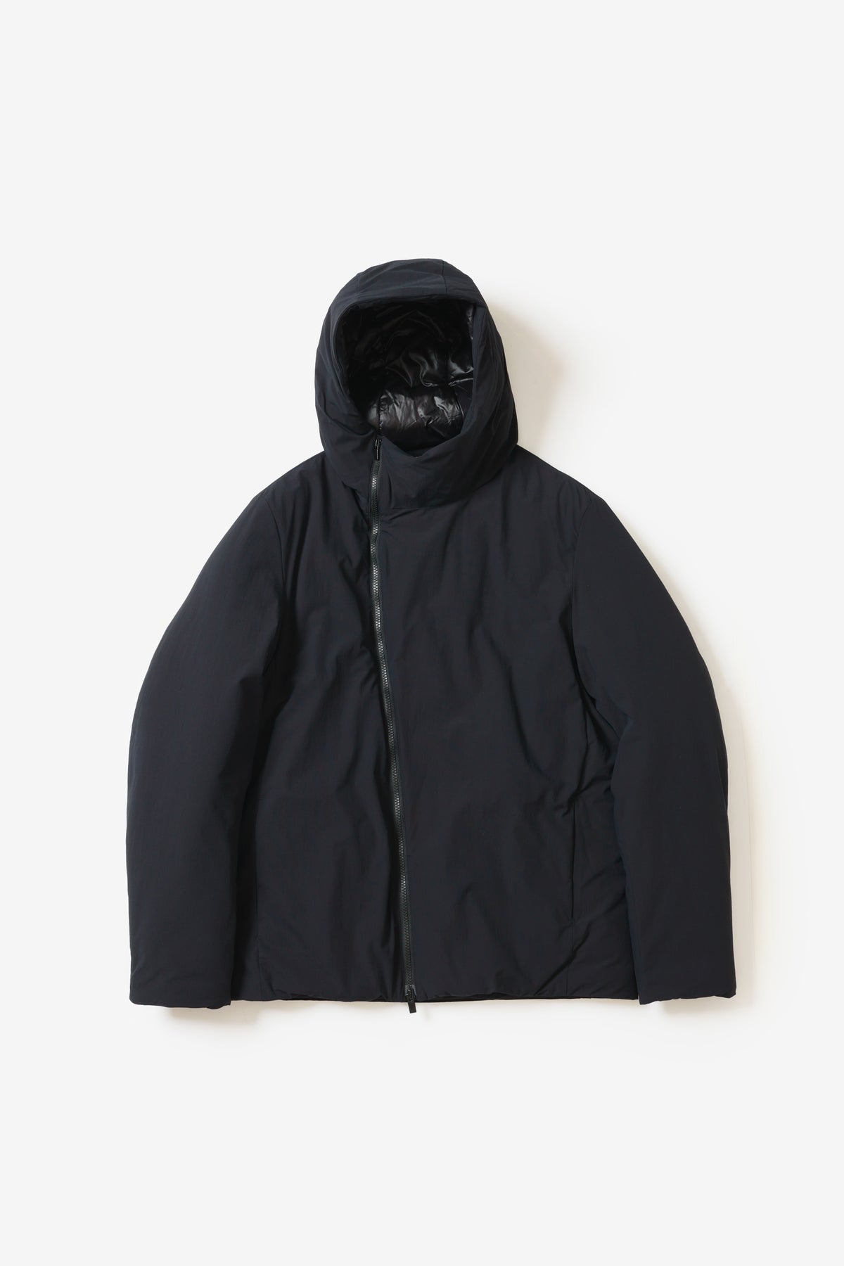 ナイロンストレッチ生地を使用したフーデットコート。ややタイトなサイズ感で、コーディネート全体に引き締まった印象を与える。ラウンドしたフロントZIPが特徴。[表地]ナイロン69%ポリウレタン31%[裏地]ナイロン100%[中わた]ポリエステル100%■同素材のアイテムはこちらモデル183cm 着用サイズ3