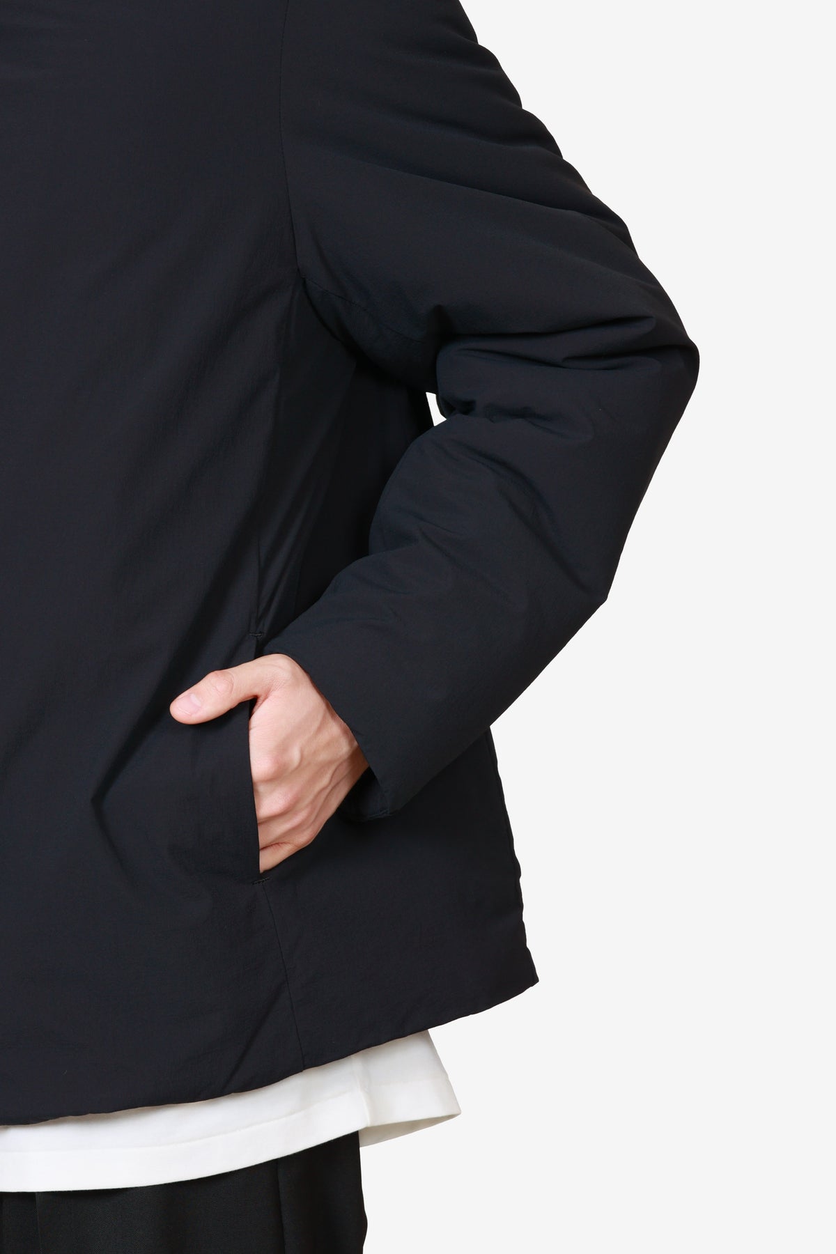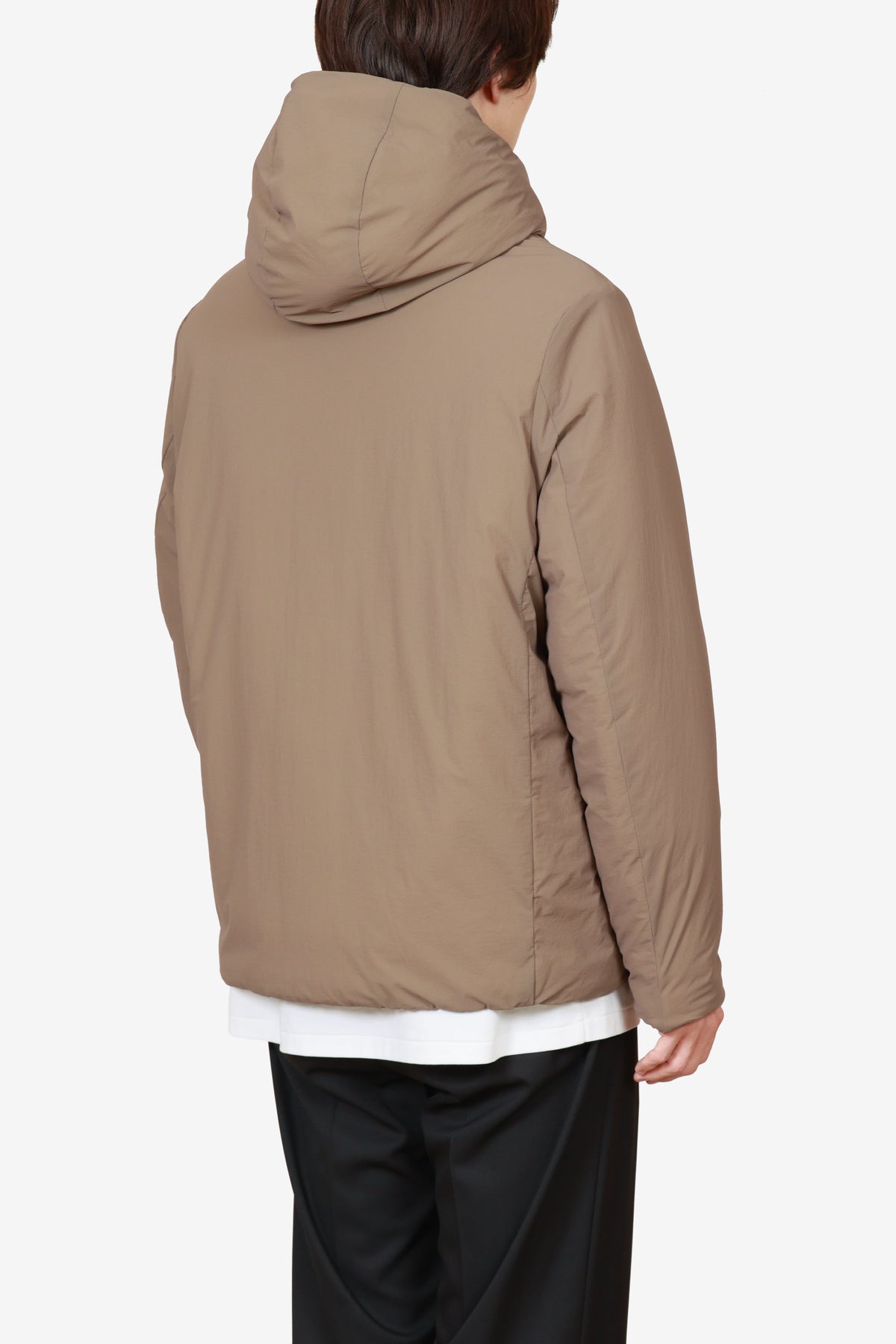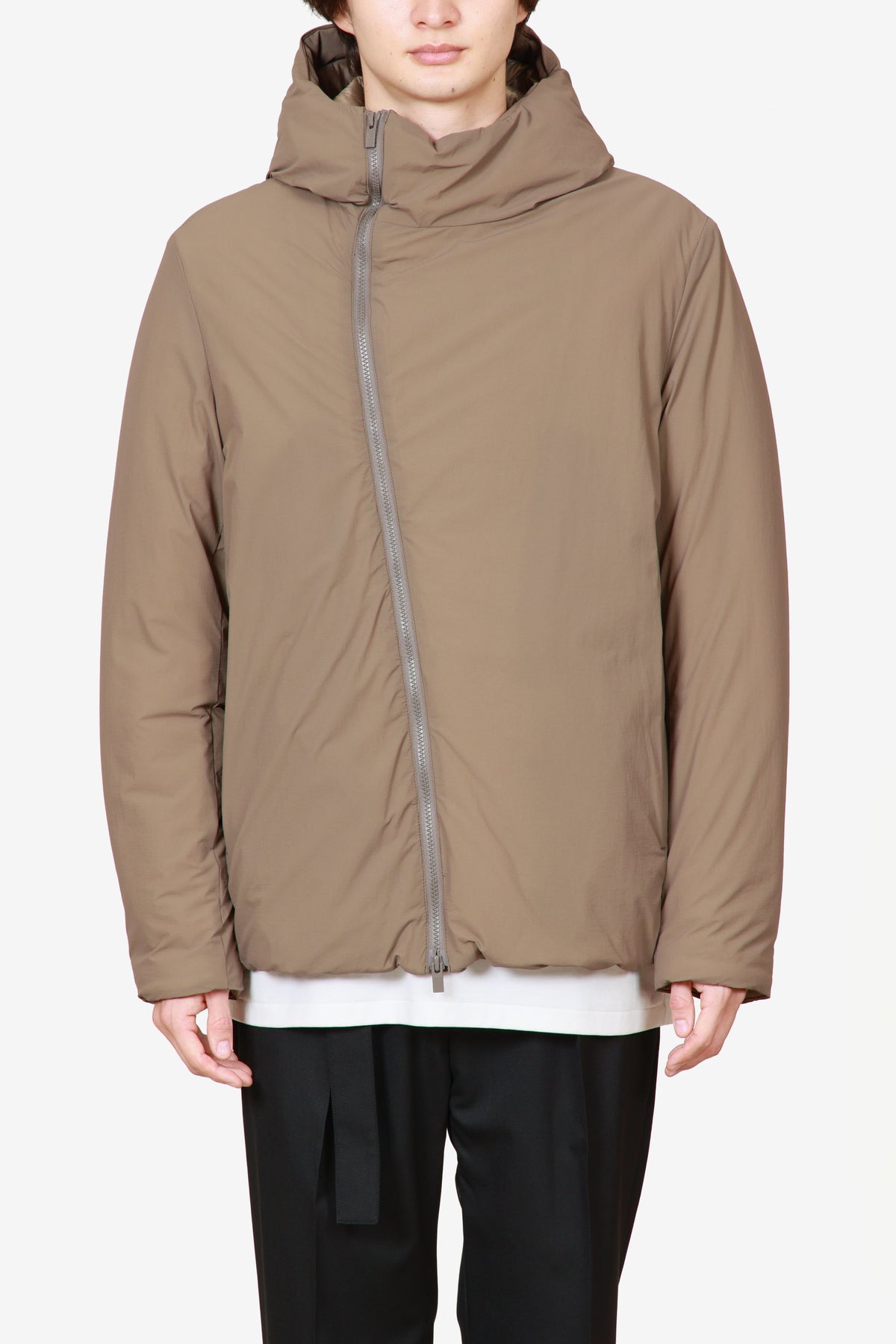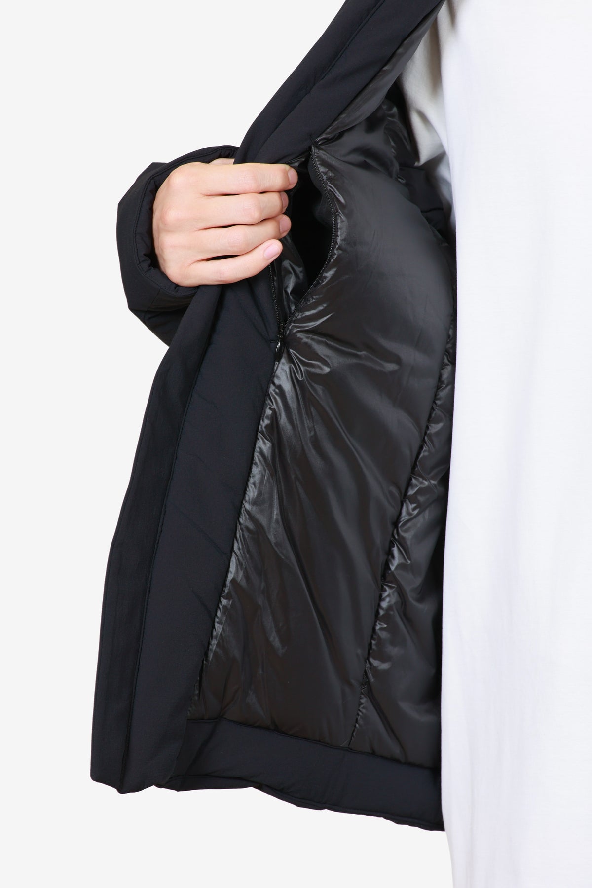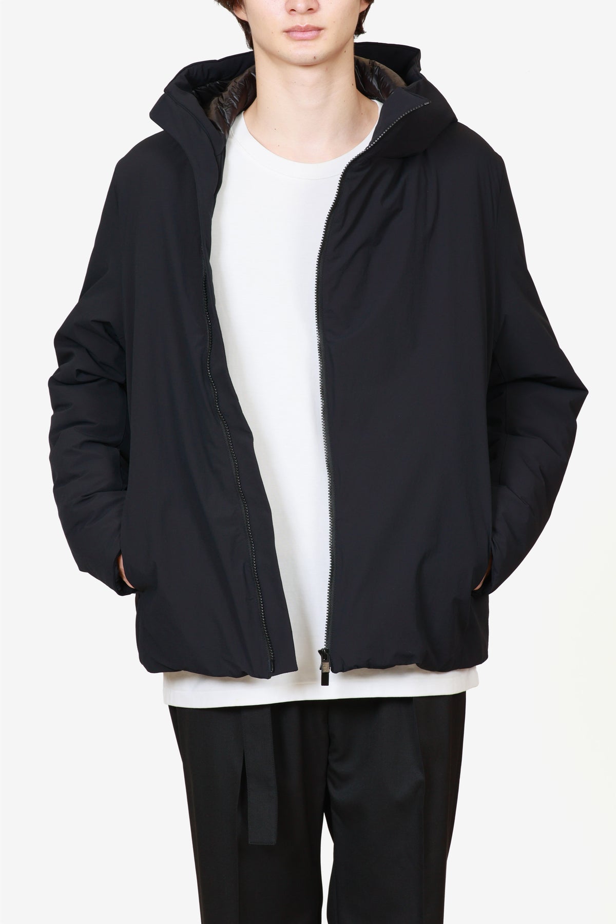 ナイロンストレッチ生地を使用したフーデットコート。ややタイトなサイズ感で、コーディネート全体に引き締まった印象を与える。ラウンドしたフロントZIPが特徴。[表地]ナイロン69%ポリウレタン31%[裏地]ナイロン100%[中わた]ポリエステル100%■同素材のアイテムはこちらモデル183cm 着用サイズ3