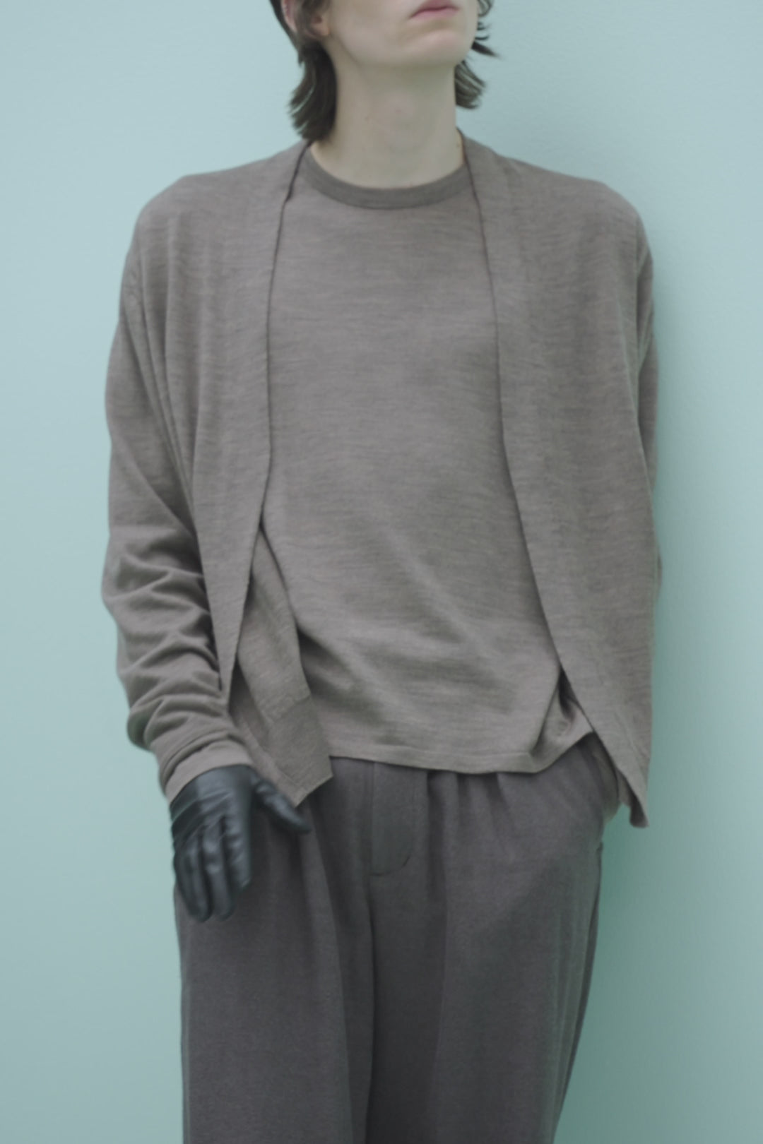 極細の糸で紡がれたこのニットは、軽やかでありながらも上品な透け感を備え、肌に心地よく寄り添います。素材にはエクストラファインメリノウールを使用し、滑らかな表面とほのかに艶めく光沢が特徴です。