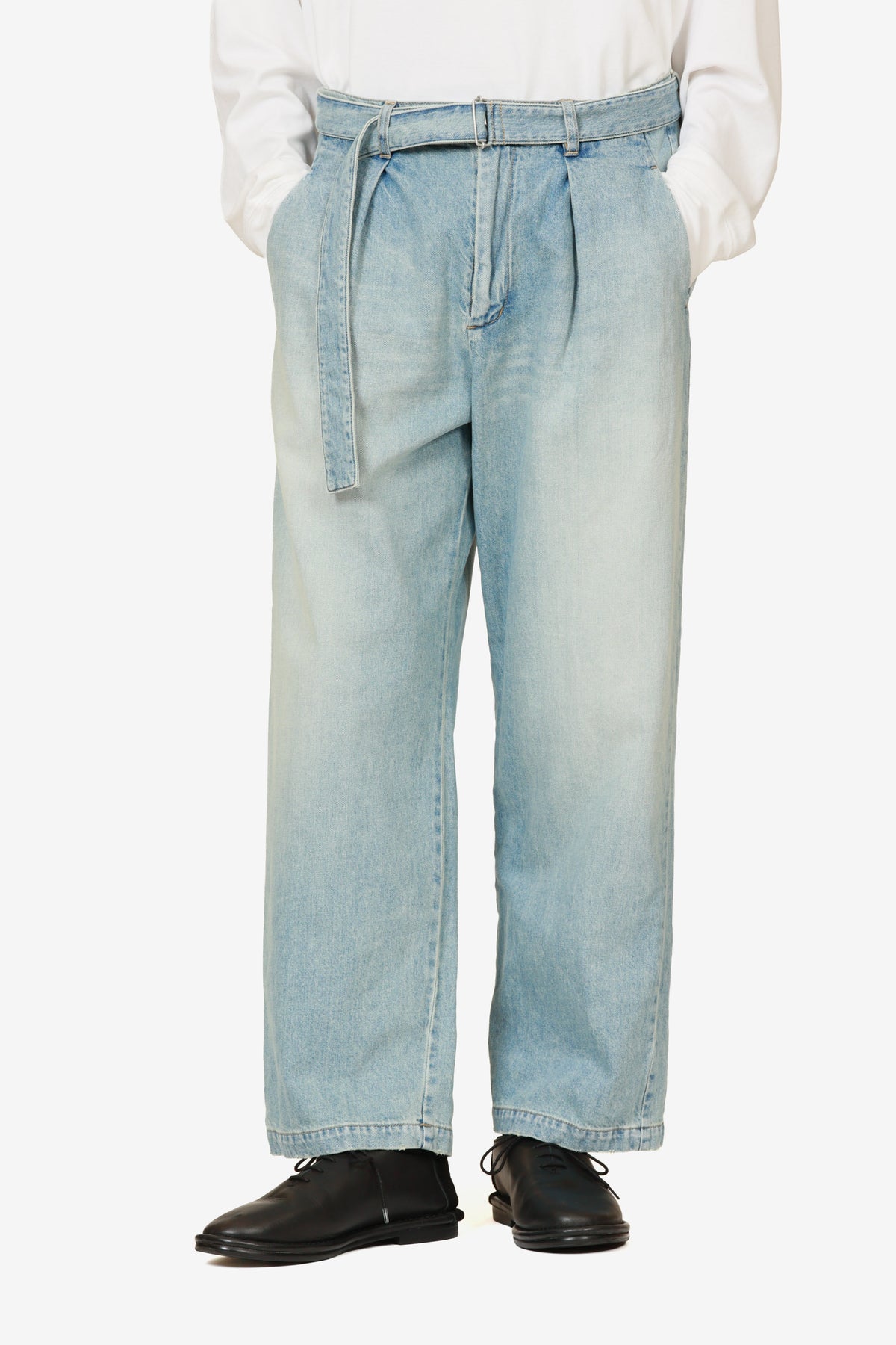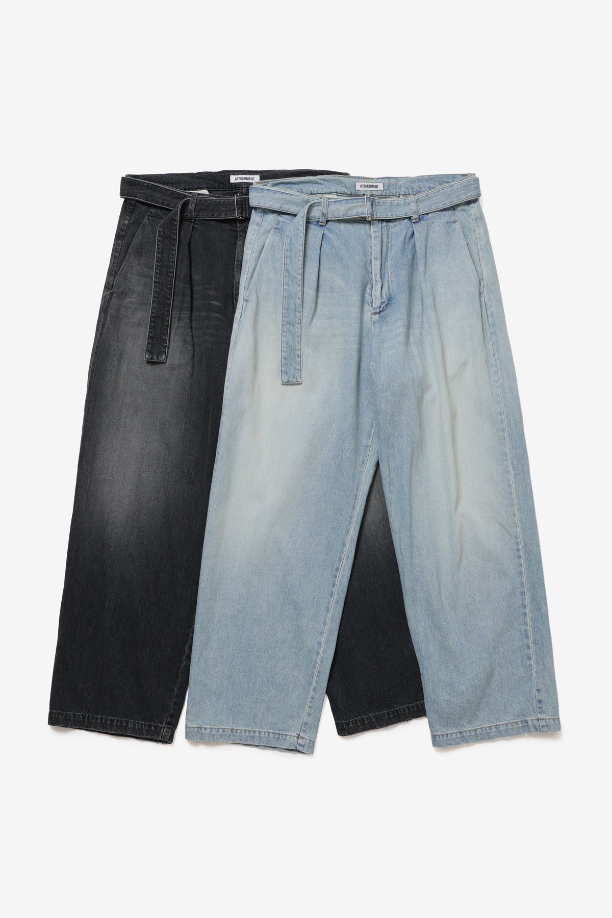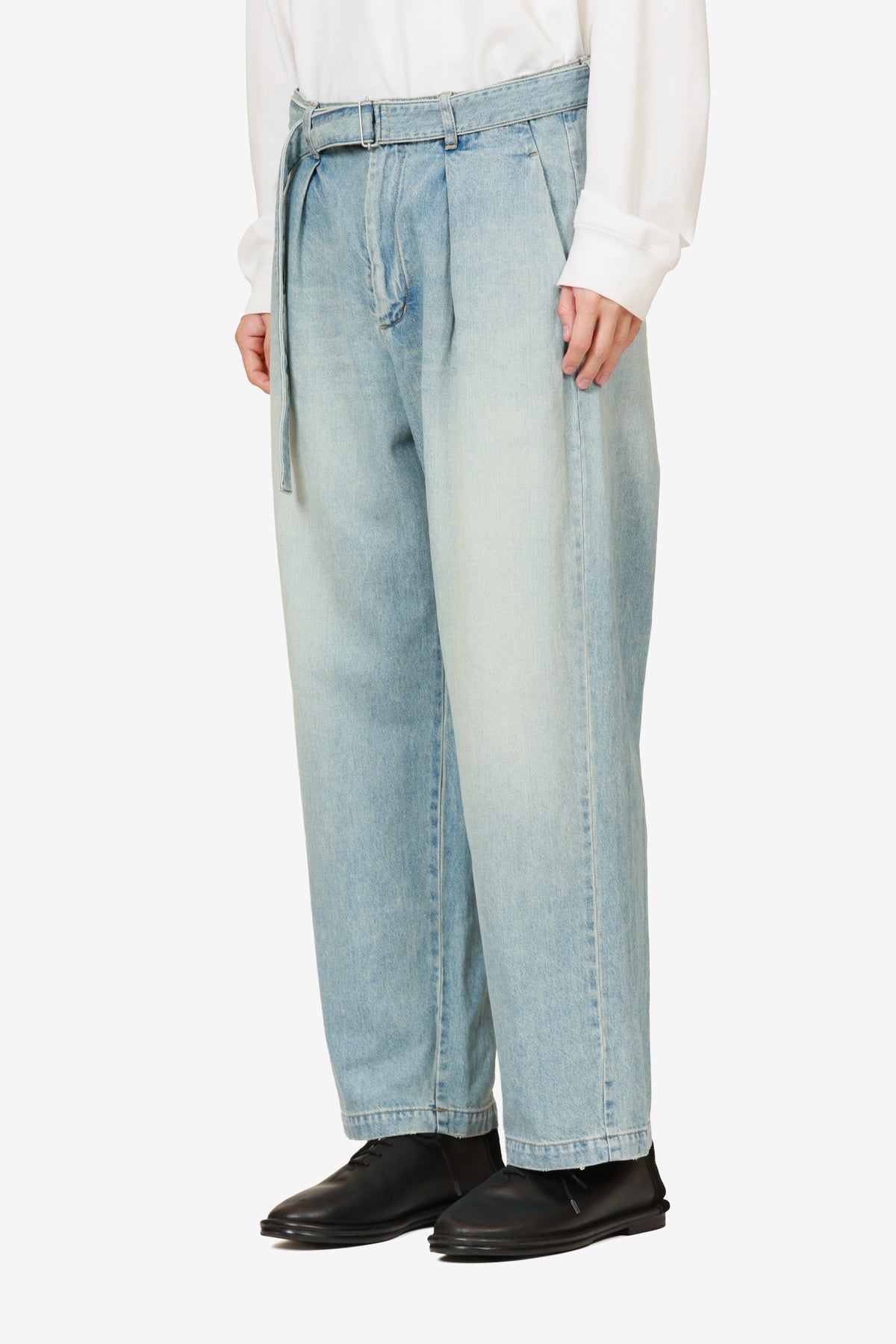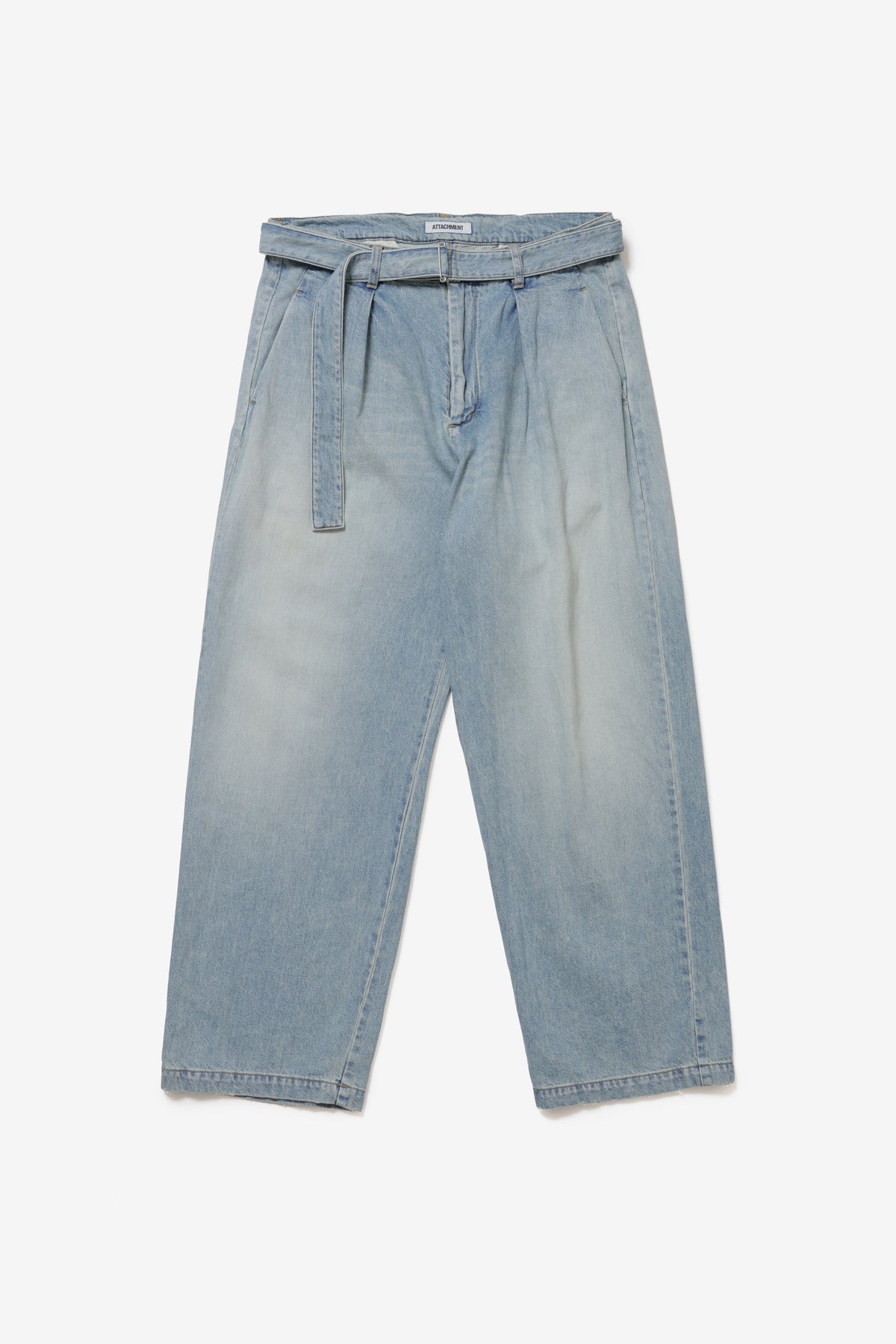 クラシックなコットン100%のデニムを使用したATTACHMENTのベルト付き1タックワイドテーパードパンツ。腰履きでストリートテイストに、ハイウエストで着用すればスッキリとした印象に。綿100%■同素材のアイテムはこちらモデル183cm 着用サイズ3