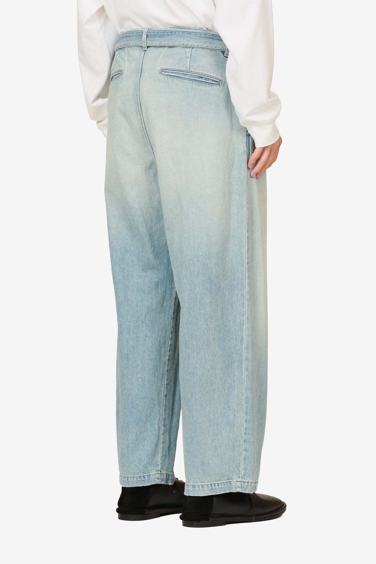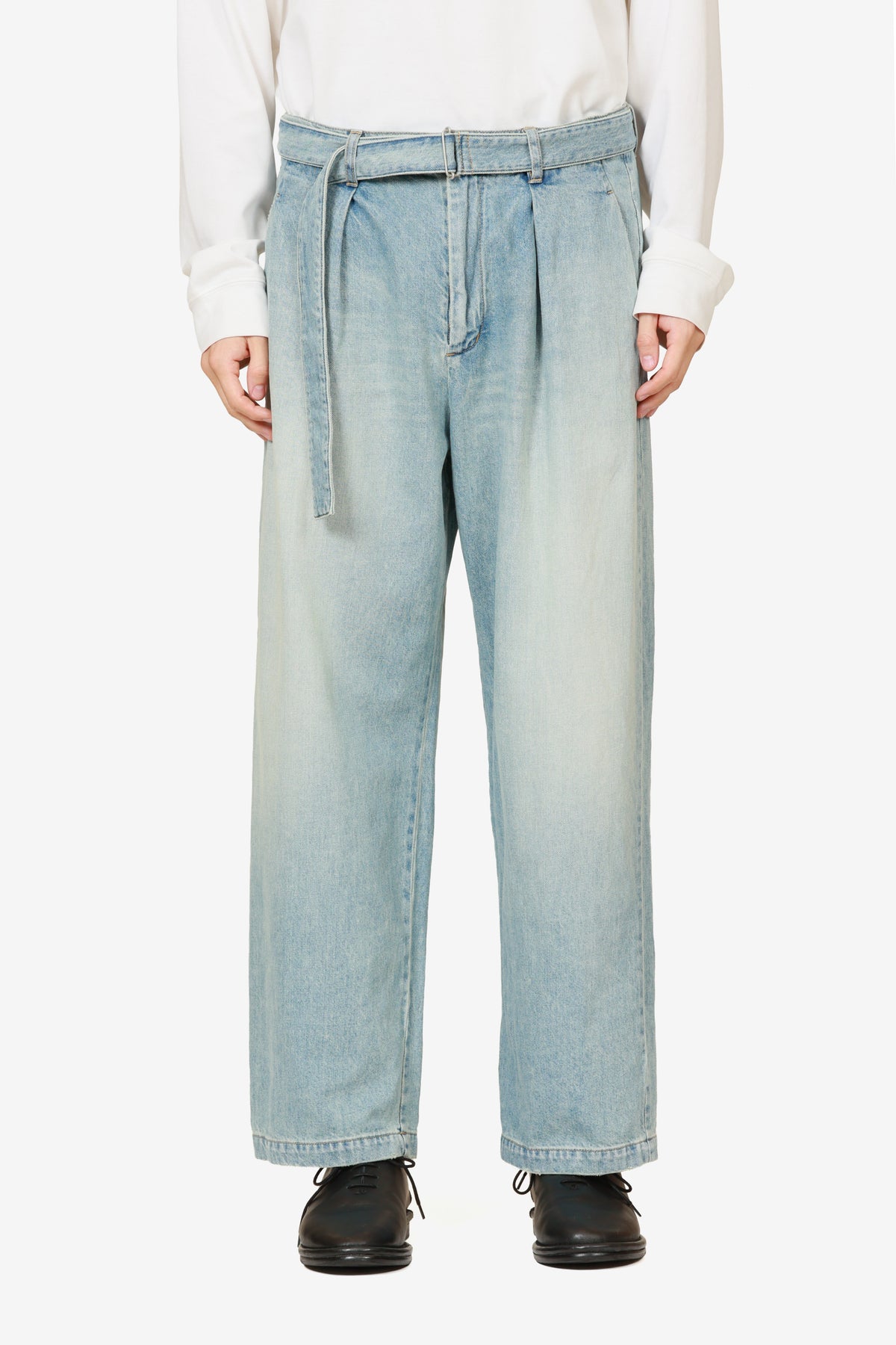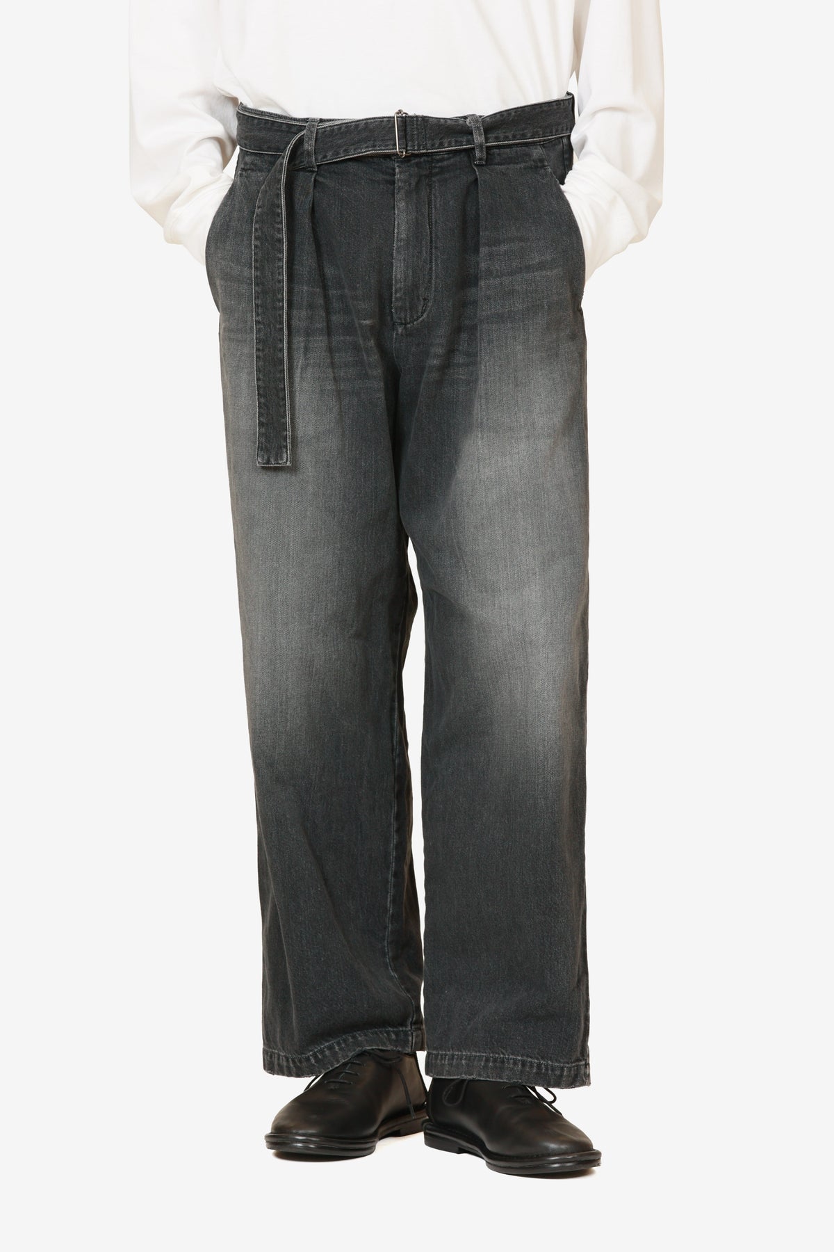クラシックなコットン100%のデニムを使用したATTACHMENTのベルト付き1タックワイドテーパードパンツ。腰履きでストリートテイストに、ハイウエストで着用すればスッキリとした印象に。綿100%■同素材のアイテムはこちらモデル183cm 着用サイズ3