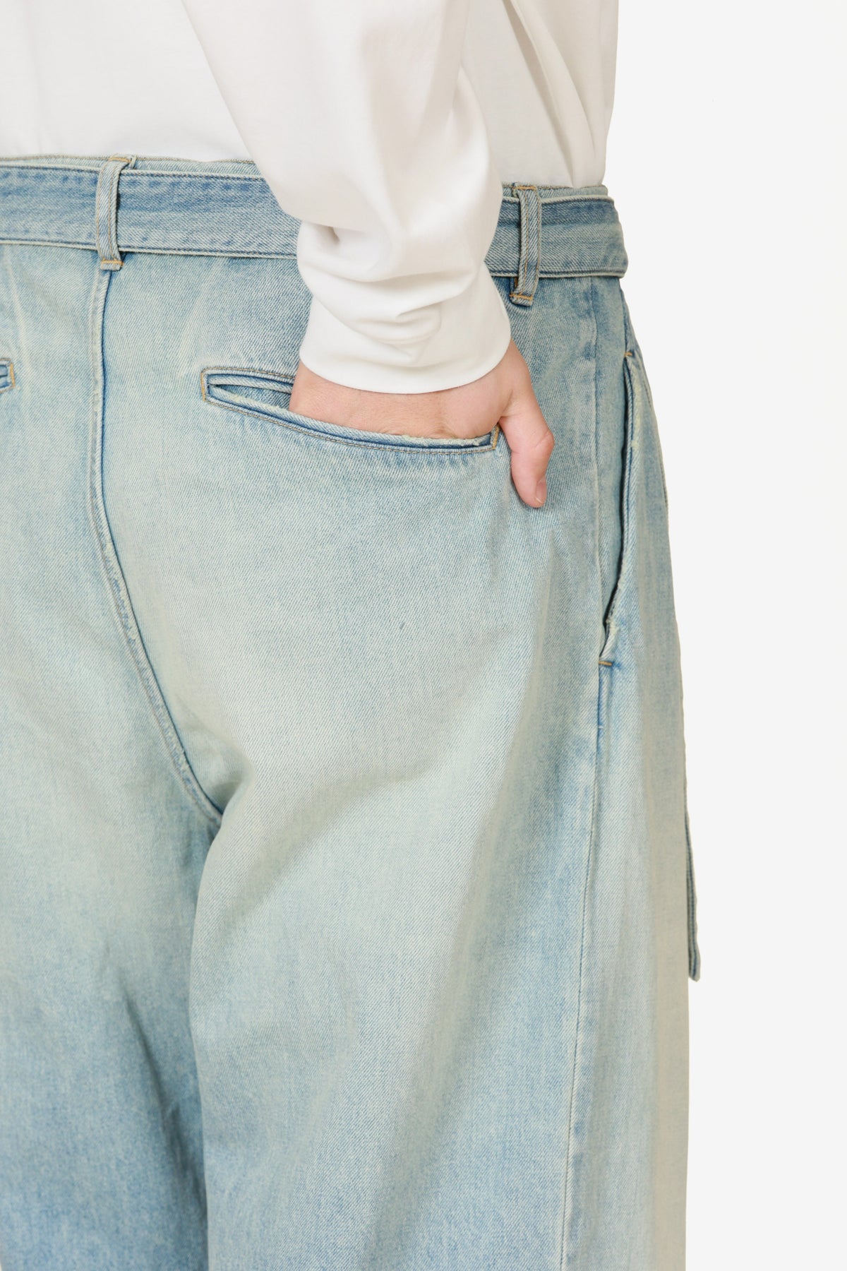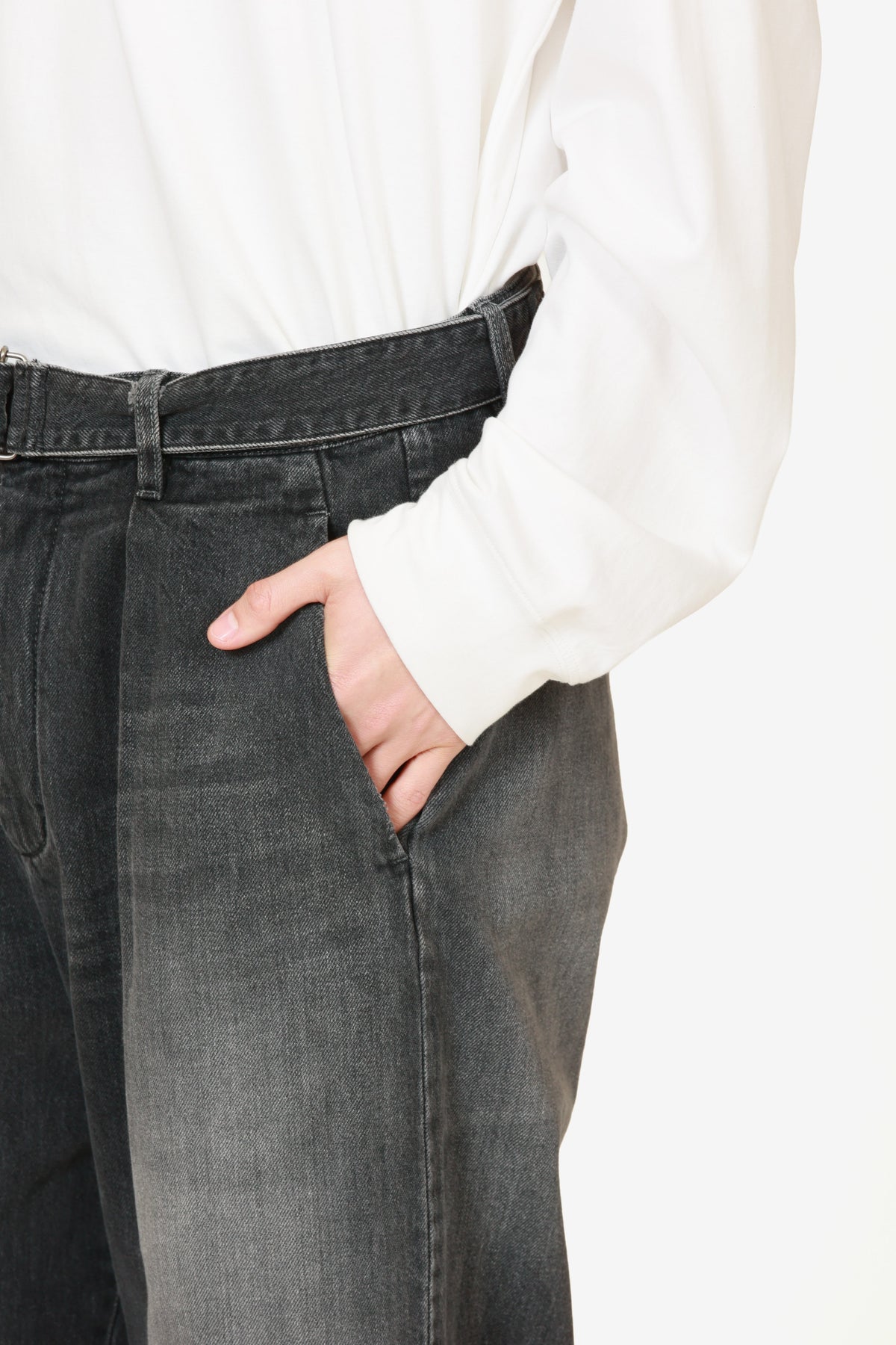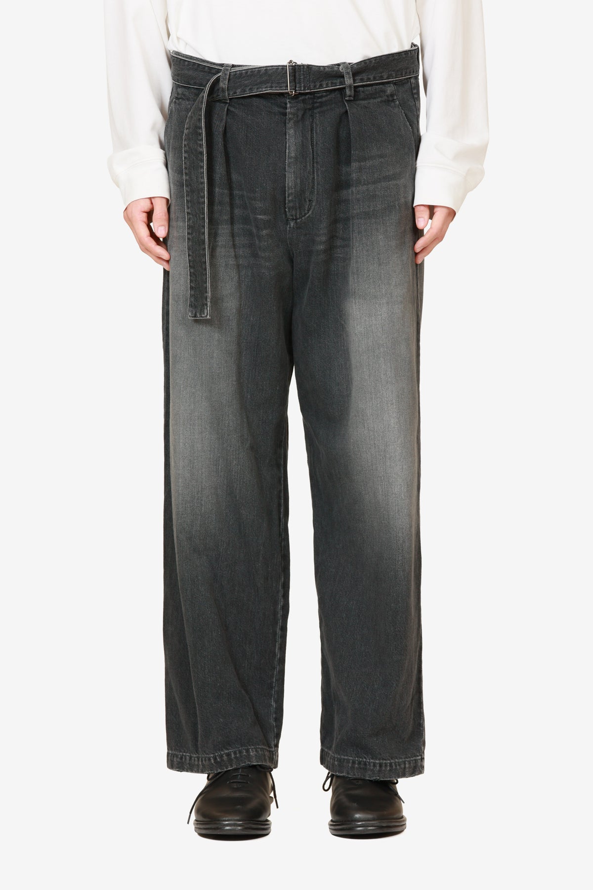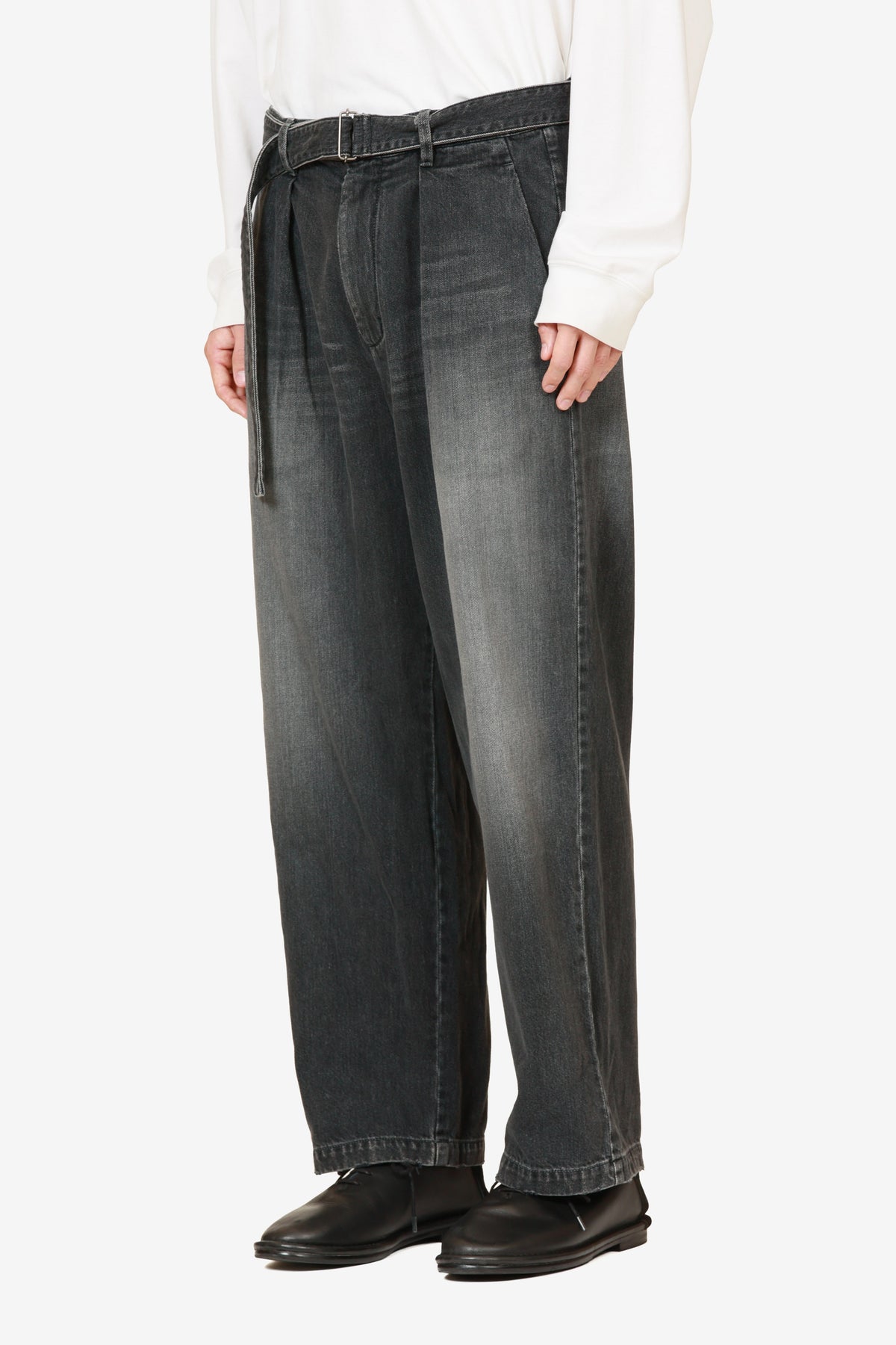 クラシックなコットン100%のデニムを使用したATTACHMENTのベルト付き1タックワイドテーパードパンツ。腰履きでストリートテイストに、ハイウエストで着用すればスッキリとした印象に。綿100%■同素材のアイテムはこちらモデル183cm 着用サイズ3