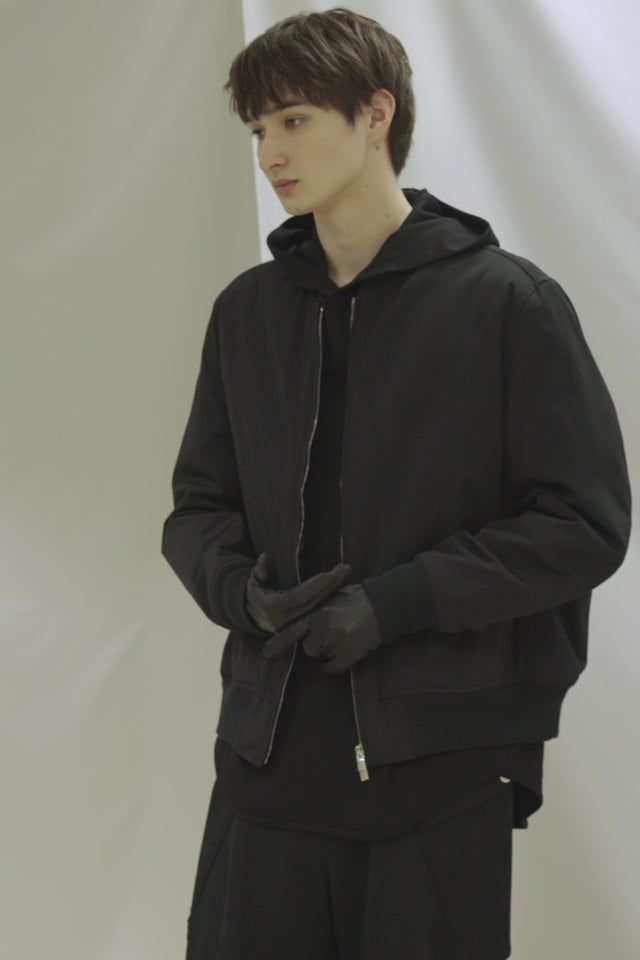高密度なCO/NYウェザークロスを使用したリラックスシルエットのMA-1過度な装飾は抑えたミニマルデザイン。