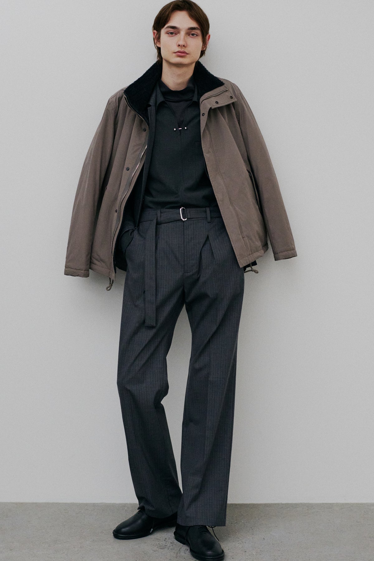高密度なCO/NYウェザークロスを使用したユーティリティージャケット過度な装飾は抑えたミニマルデザイン。裏地はウールアルパカボアを使用し防寒性も高い。[表地]ナイロン73%綿27%[身頃裏地]表面(ボア部分):毛80%アルパカ20%基布:綿100%[袖裏地]ポリエステル100%[袖中わた]ポリエステル100%モデル183cm 着用サイズ3■同素材のアイテムはこちら