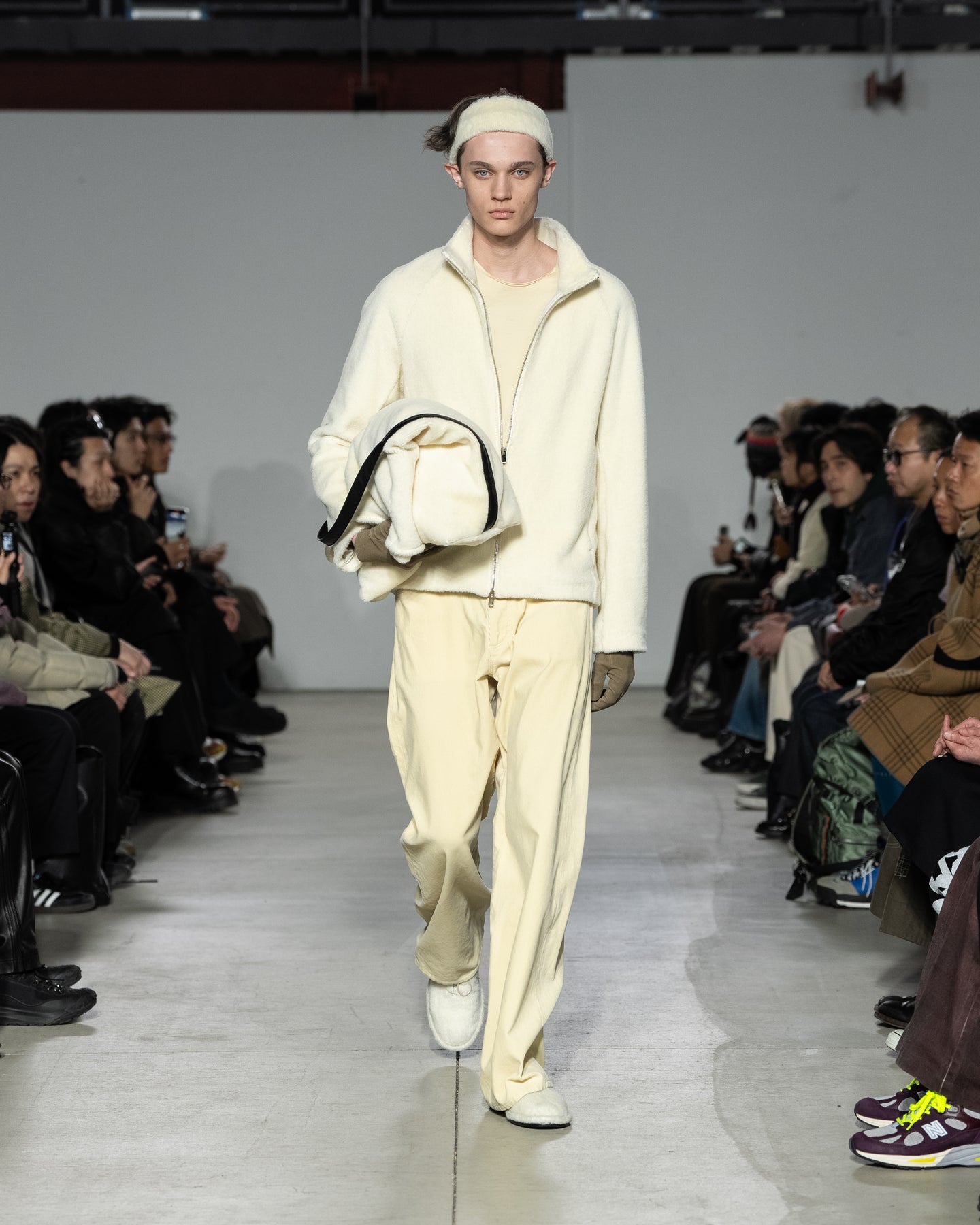 和歌山県高野口で作成したオリジナルのウールアルパカボア。通常のボアより毛足を長く設計し、柔らかなボリューム感がある。立体的なパターンメイキングで動きのあるトラックジャケットに仕上げている。[表地]表面(ボア部分):毛80%アルパカ20%基布:綿100%[裏地]ポリエステル64%複合繊維(ポリエステル)36%モデル183cm 着用サイズ3■同素材のアイテムはこちら