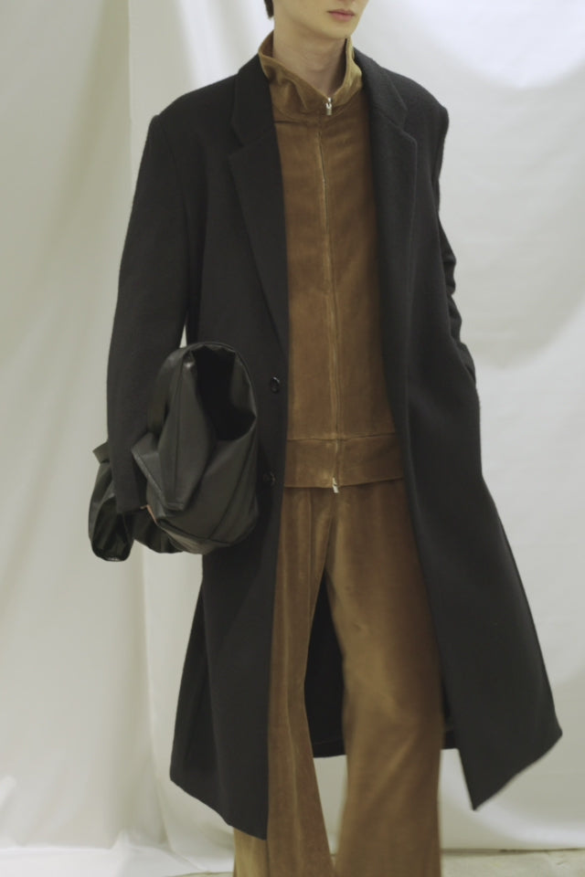 2/90 SUPER120Sをシャギー起毛した中綿入りチェスターコート。