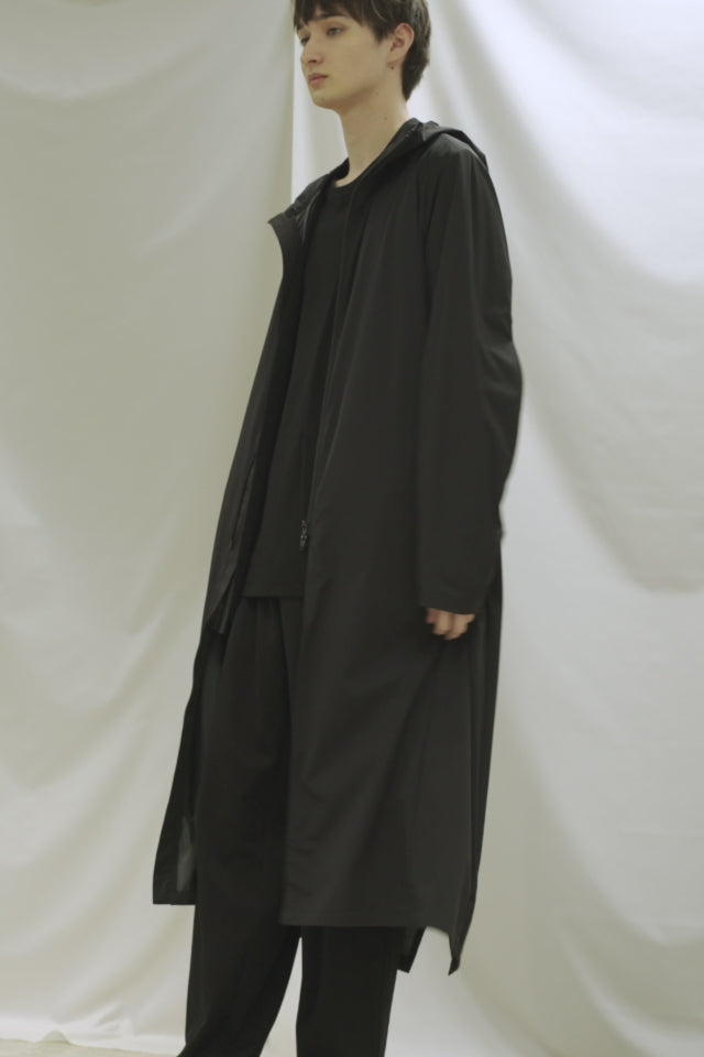 すっきりシルエットのフーデッドコート。