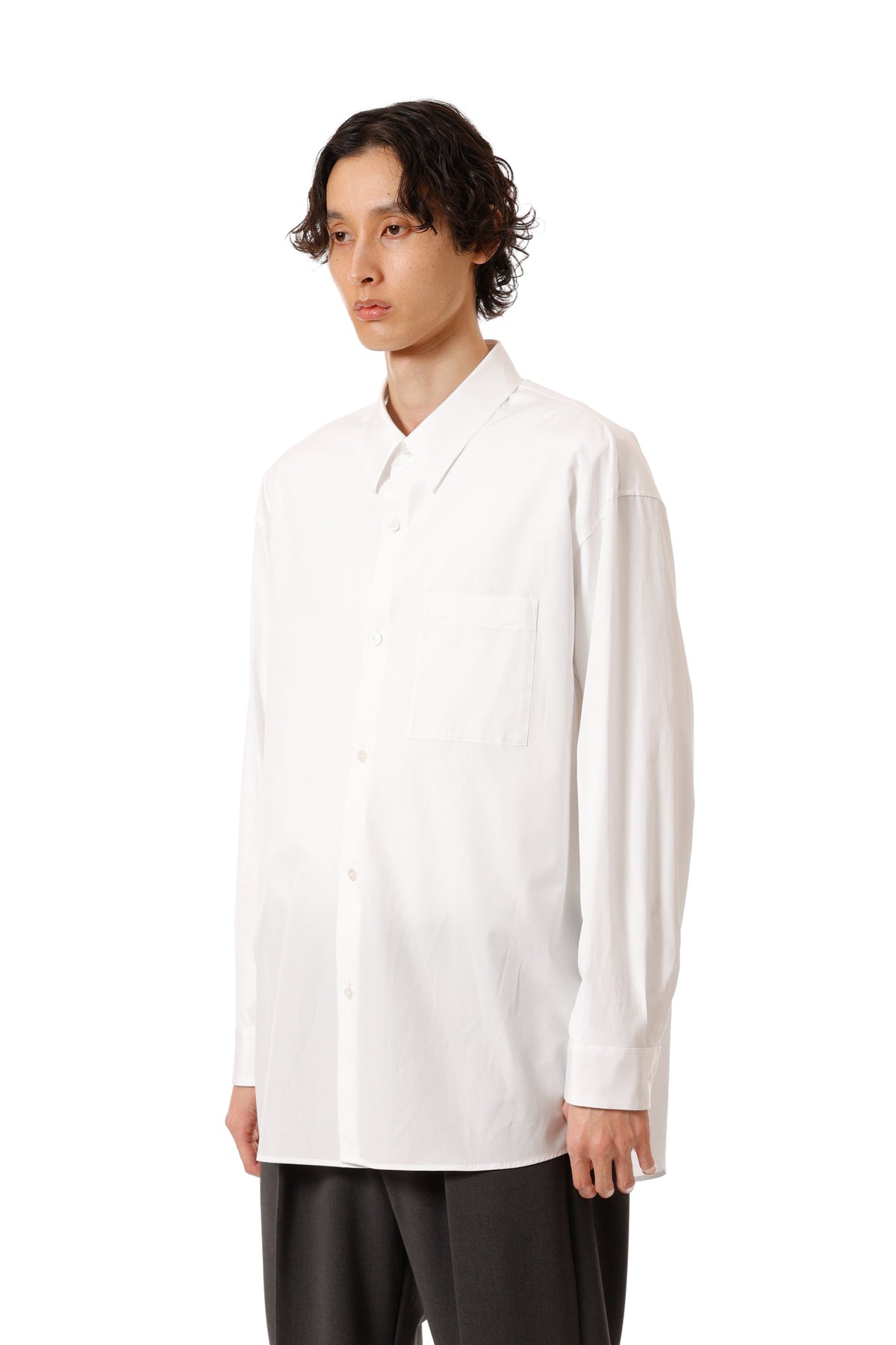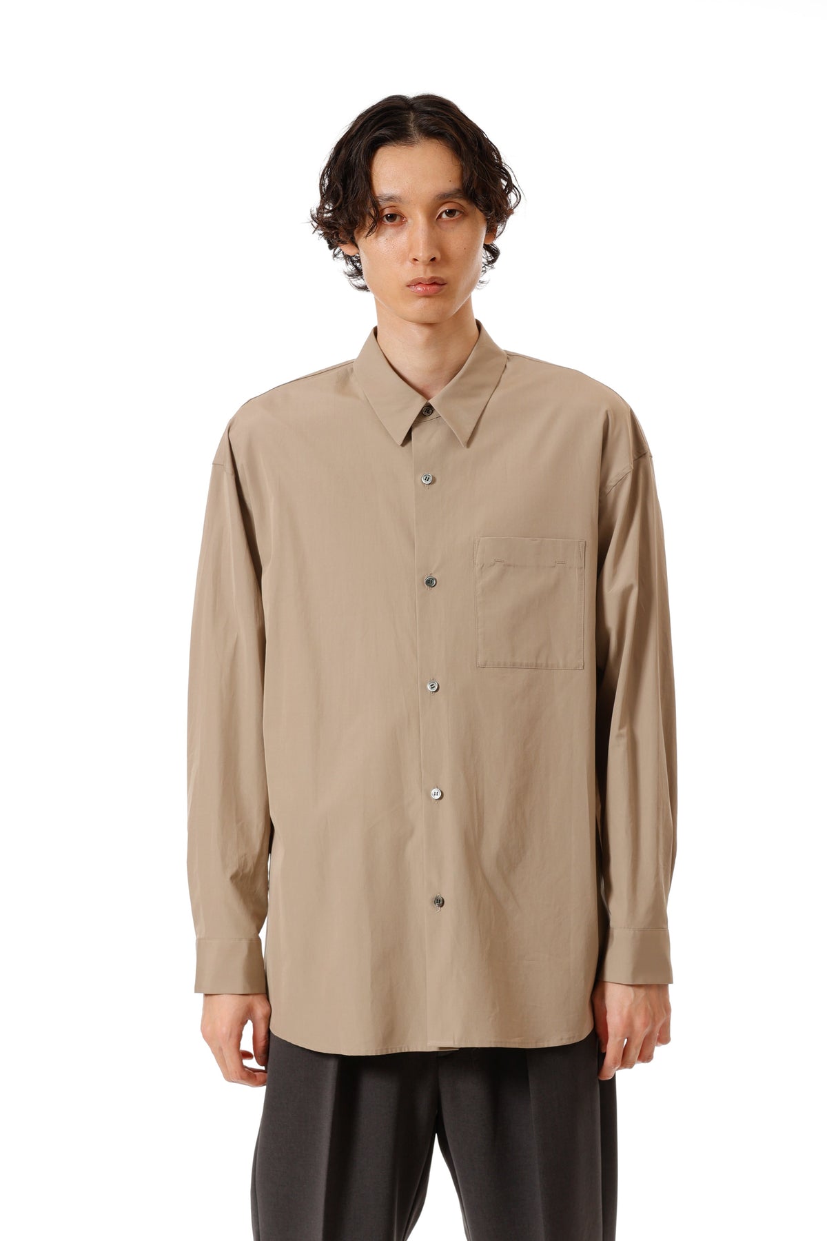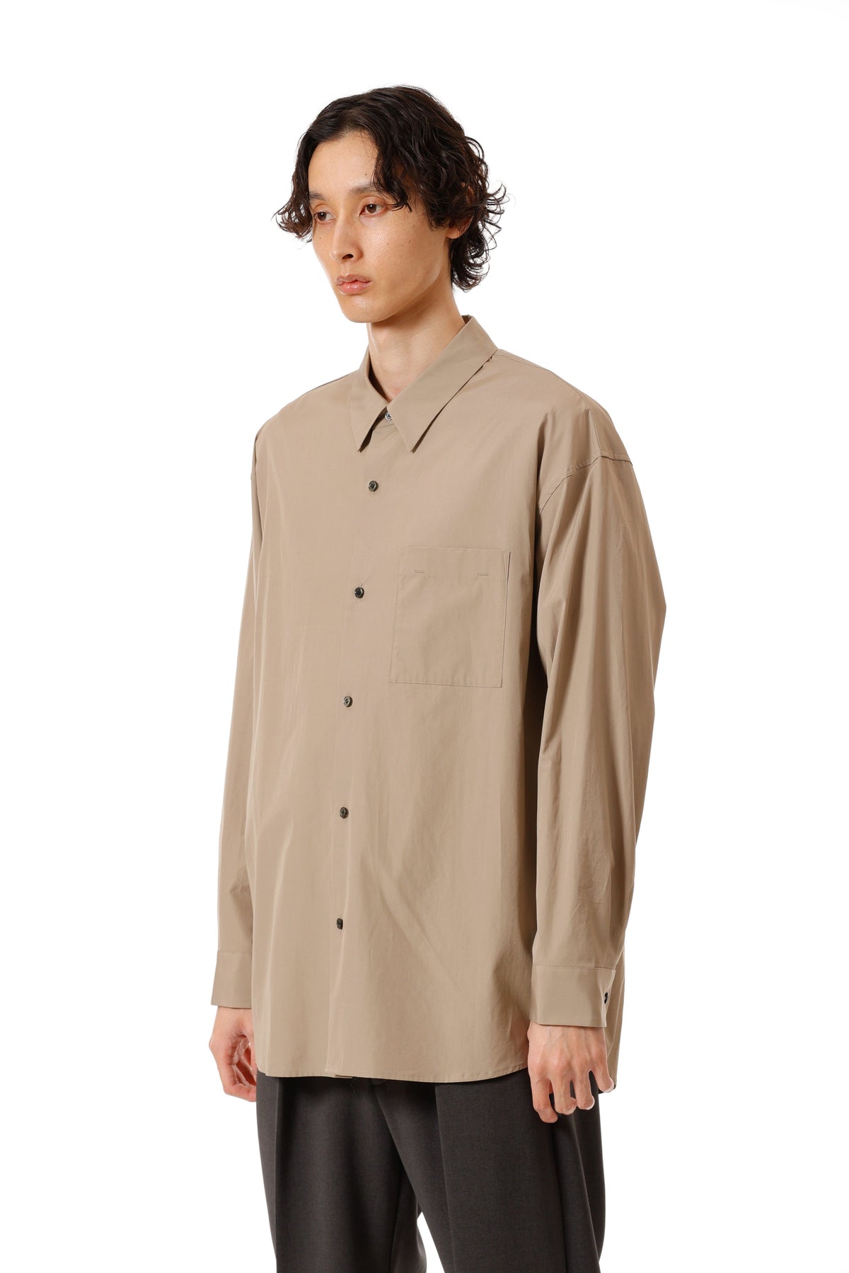 ややゆとりのあるシルエットのレギュラーカラーL/Sシャツ。