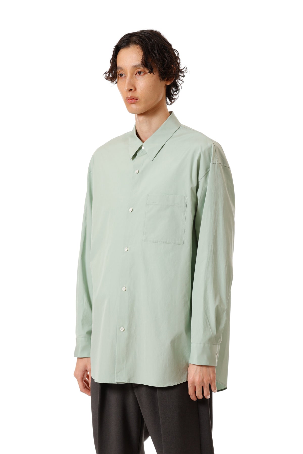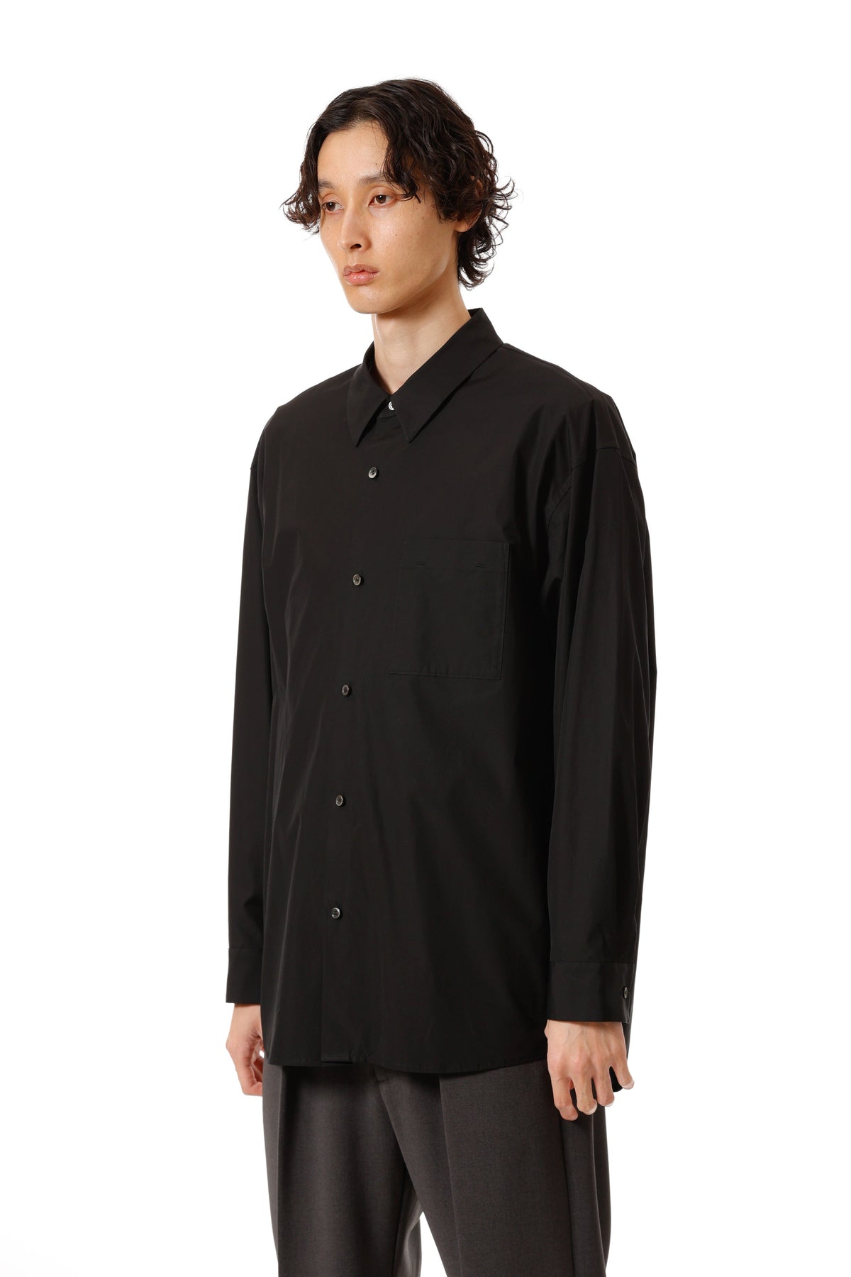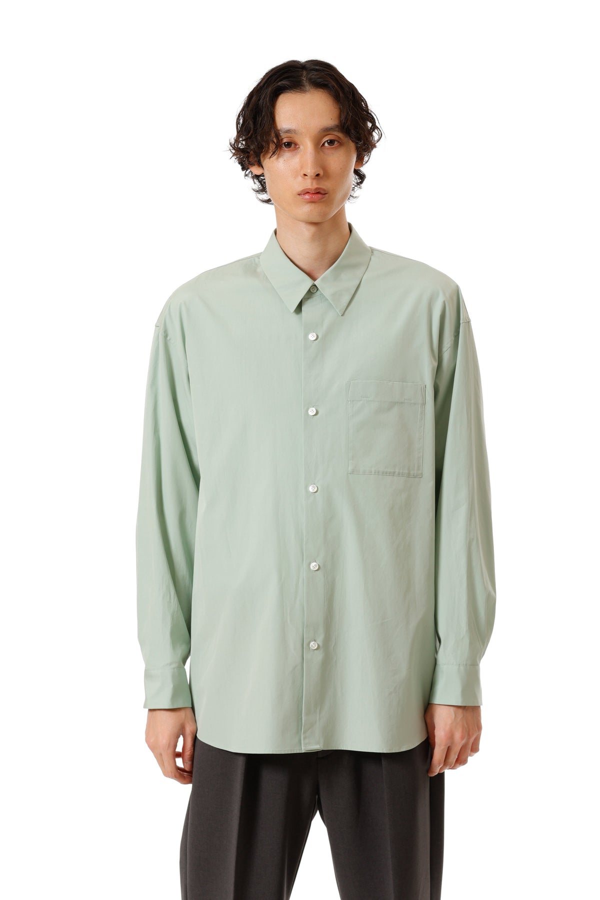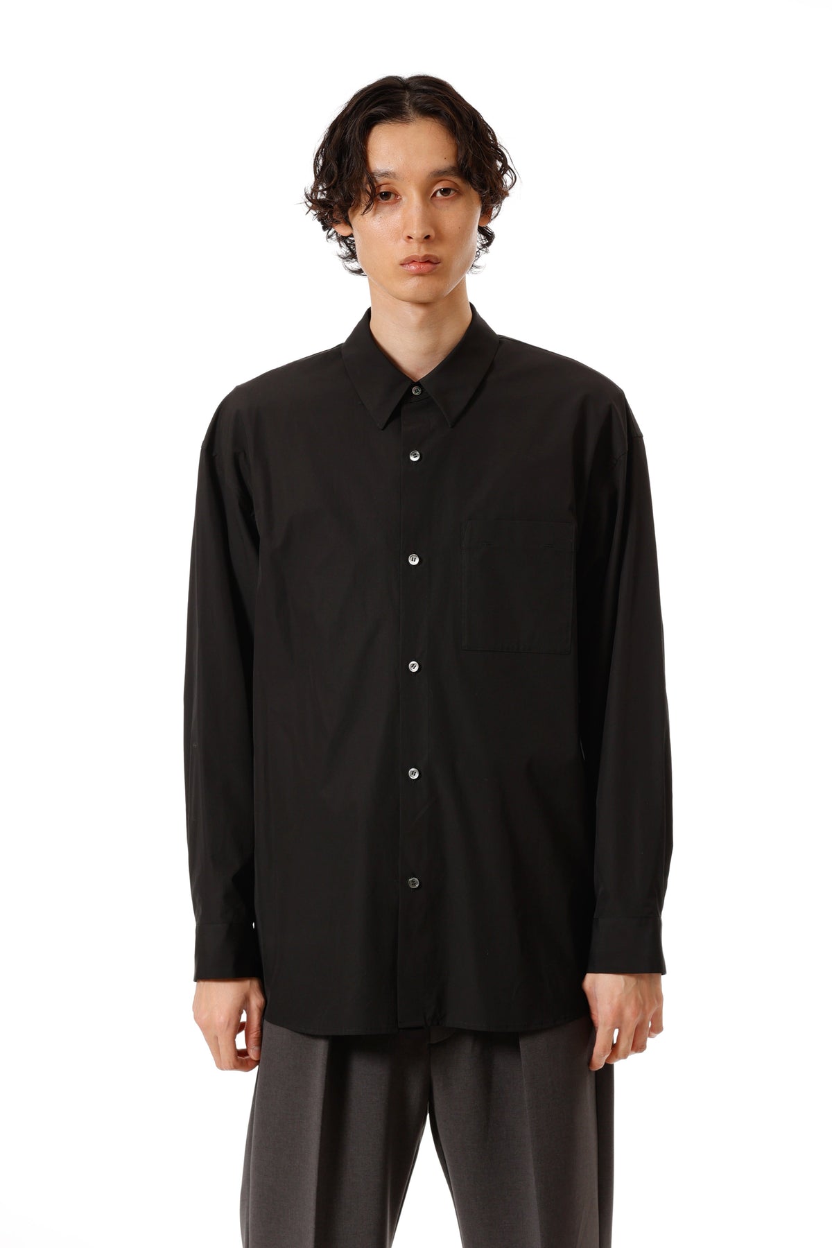 ややゆとりのあるシルエットのレギュラーカラーL/Sシャツ。