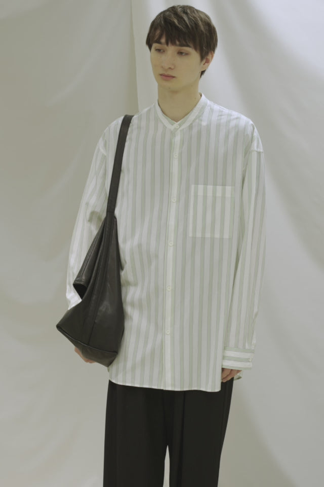 ややゆとりのあるバンドカラーL/Sシャツ。
